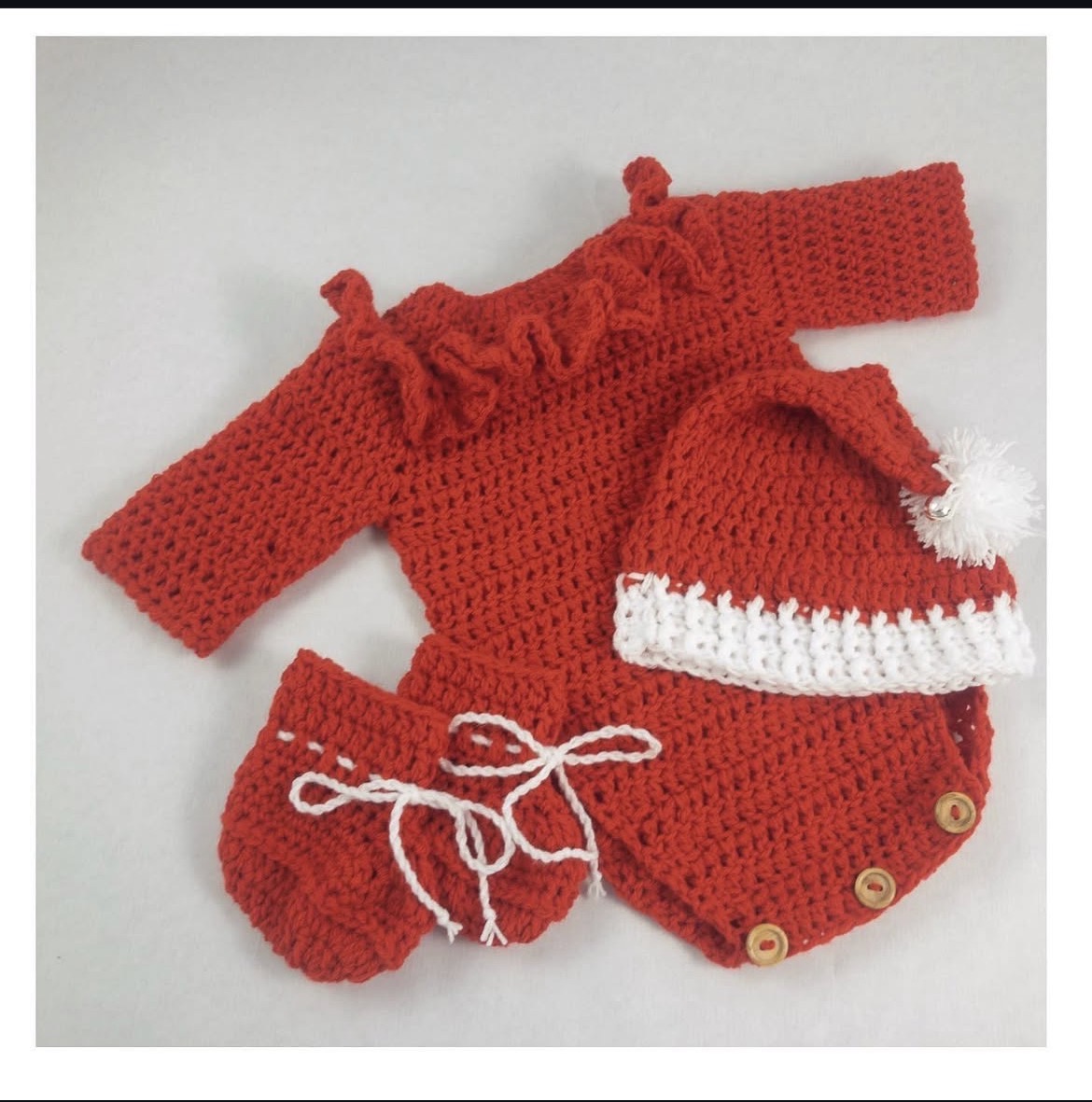 Pelele tejido a mano con delicados volantes, suave, cómodo y perfecto para las primeras puestas.